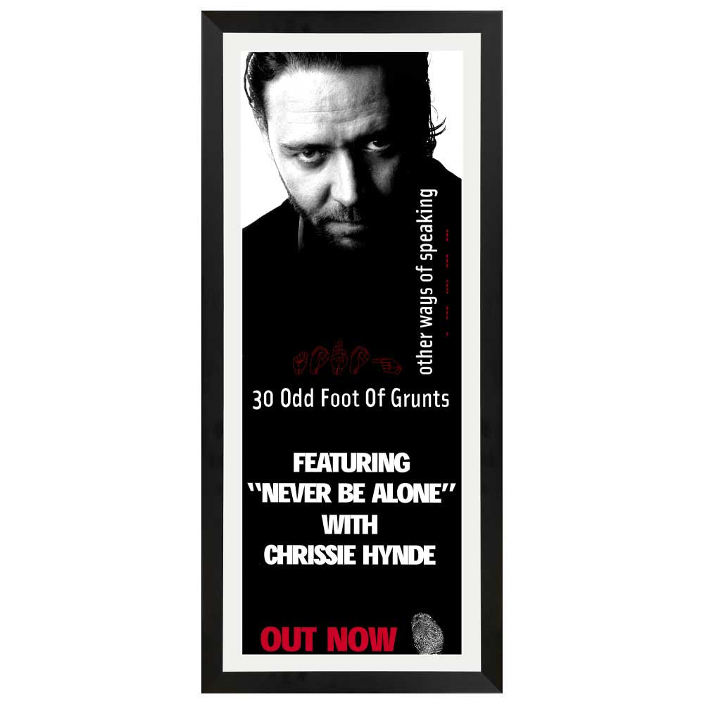 Showcase the iconic collaboration of 30 Odd Foot of Grunts, fronted by Russell Crowe, with this Other Ways of Speaking Vintage Daybill Poster. Featuring the track "Never Be Alone" with Chrissie Hynde, this professionally framed poster captures a piece of early 2000s Australian music history. Preserved in VF+ (Very Fine Condition), it’s a stunning addition to any collection.