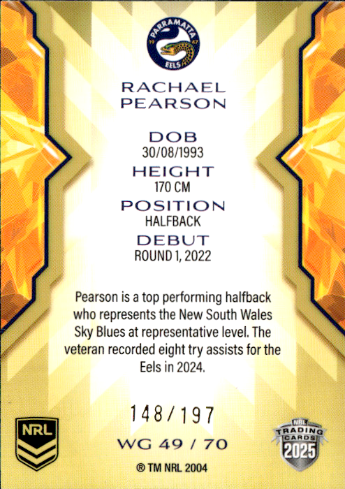 Rachael Pearson Eels Womens Gold Parallel #148/197 2025 NRL Traders Trading Card WG49/70